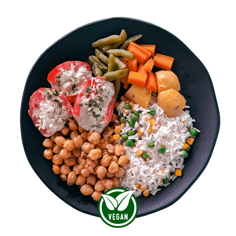 Grão-de-bico refogado com alho, cebola, azeite de oliva, louro e chimichurri, trazendo um sabor intenso e equilibrado.