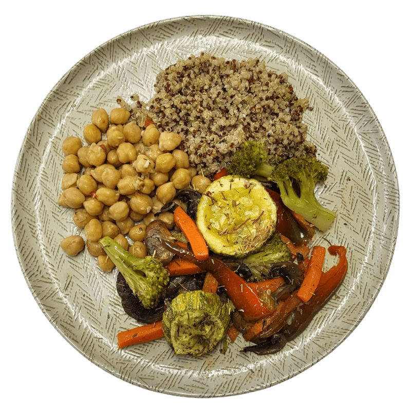 Quinoa mix cozida com alho e azeite de oliva, temperada com Sal do Himalaia, garantindo um nível base e nutritivo.
