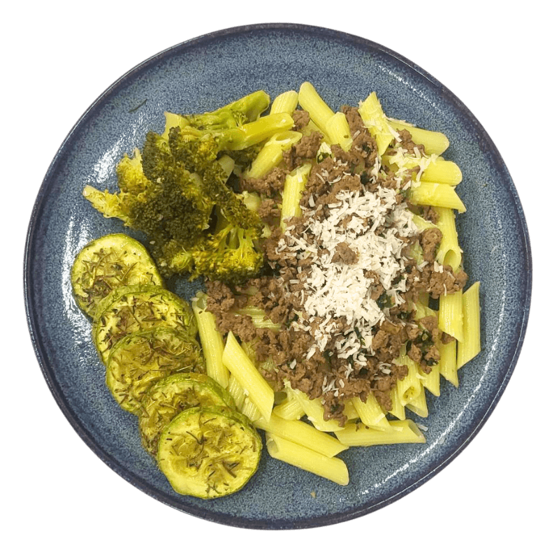 72 - Penne Sem Glúten com Patinho Refogado e Legumes