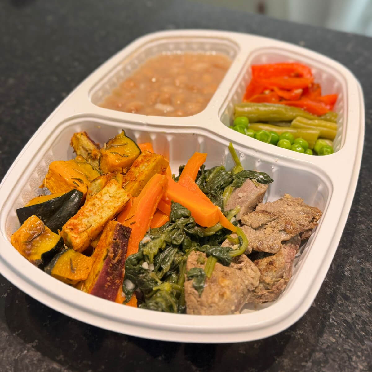 Abóbora assada no forno, temperada com alecrim, sal do Himalaia, tomilho e azeite de oliva extravirgem, para um sabor delicado e levemente adocicado.
