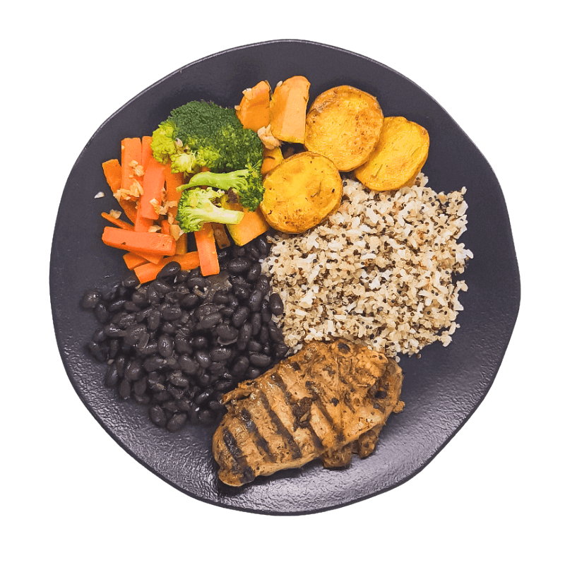 Quinoa mix cozida, refogada com alho natural e azeite de oliva extravirgem, finalizada com um descanso para garantir a textura perfeita.