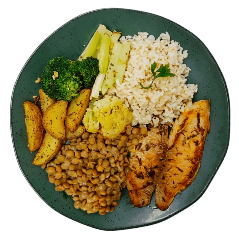 Lentilha verde refogada com alho natural, azeite de oliva extravirgem e Sal do Himalaia, cozida até ficar macia.