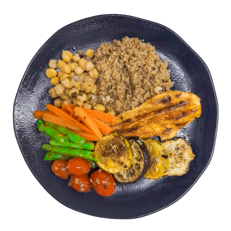 Alimentação sem preocupação: refeições preparadas com ingredientes orgânicos, carnes de alto valor biológico e sem ultraprocessados.