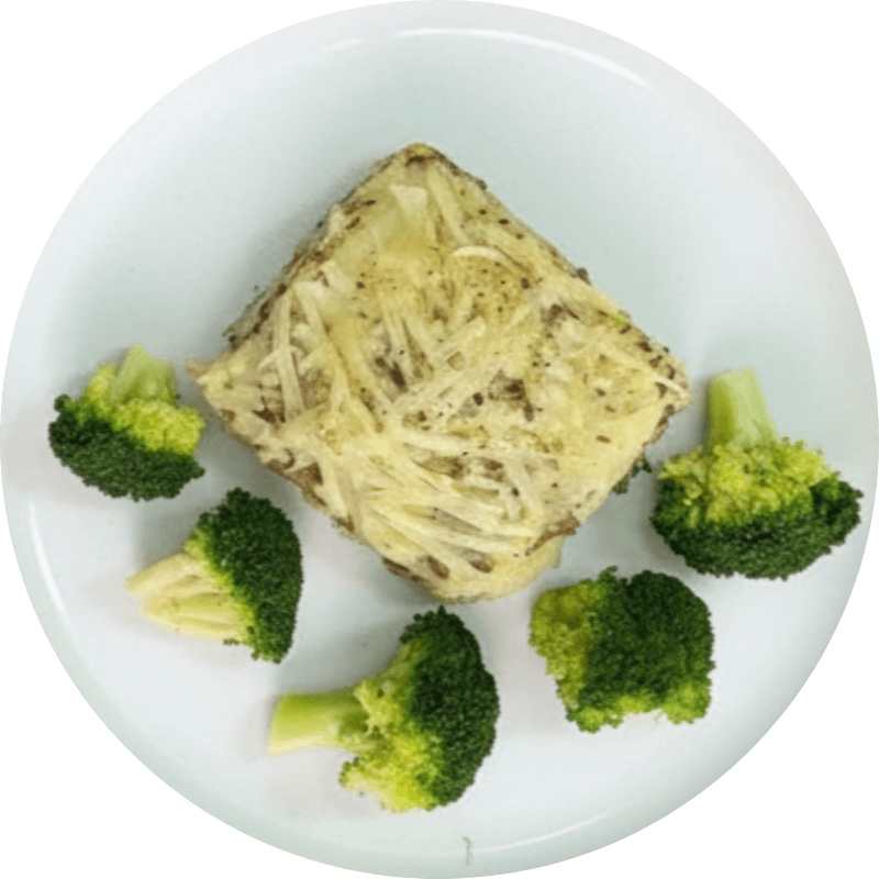 Blend de carne bovina nobre refogado com cominho, salsinha, cebola e alho, banhado em molho de tomate natural e coberto por um cremoso purê de batata com queijo vegetal gratinado no forno. Acompanha um toque saudável de brócolis refogado com alho, cebola e ezeite de oliva extra.